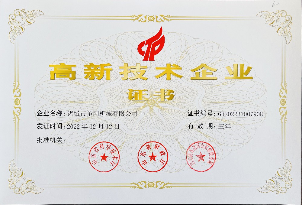 喜報!諸城圣陽機械被評為高新技術企業(yè)喜報!諸城圣陽機械被評為高新技術企業(yè)查看詳情 -
