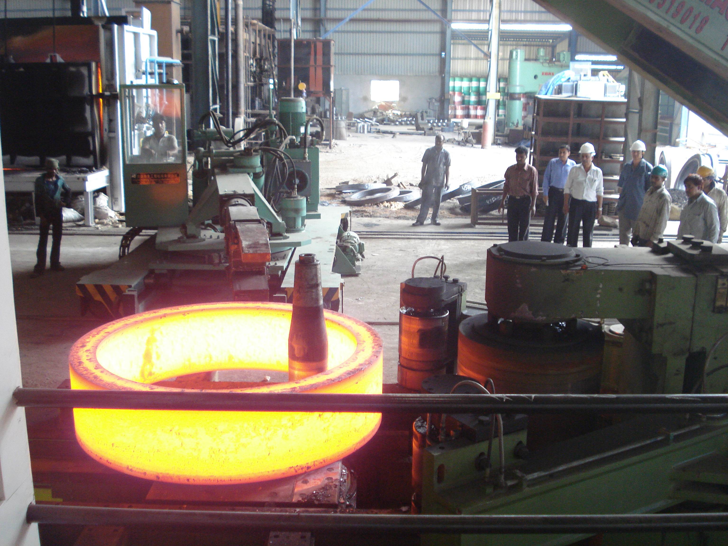 什么是閉式輾環(huán)機?閉式碾環(huán)機是將加熱并沖有小孔的坯料套在芯輥上,靠碾壓輥的內緣帶動坯料旋轉,實現(xiàn)坯料厚度的減薄與直徑的擴大。這種工藝方式結構等的限制,已較少采用。產品廣泛應用于機械、汽車、火車、船舶、石油化工、航空、航天、原子能、風力發(fā)電等眾多工業(yè)領域。 工作查看詳情 -